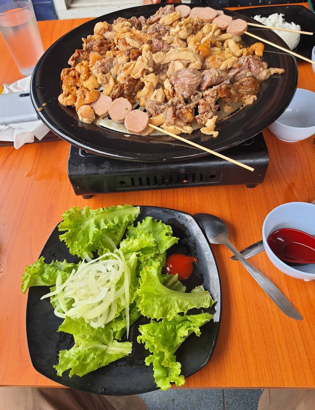 Dengan harga 57 ribu rupiah per-orang kamu udah bisa nikmatin all you can eat disini. Korean grill and buffet ini berlokasi di Jalan ZA Pagar Alam tepatnya di seberang Museum Lampung. Selain menjual grill ala korea mereka juga punya shabu dan suki. Sajian menu lainnya yang mereka miliki seperti odeng, gimbap, chicken crispy, pukis sampai puding juga ada. Bikin betah ornamen disini penuh dengan hal yang berkaitan dengan korea seperti standee i dol sampai spot foto yang lucu. Lagi ada promo kalian bisa kepoin langsung ke Instagram mereka di @sungogi_lampung atau @sungogilampung