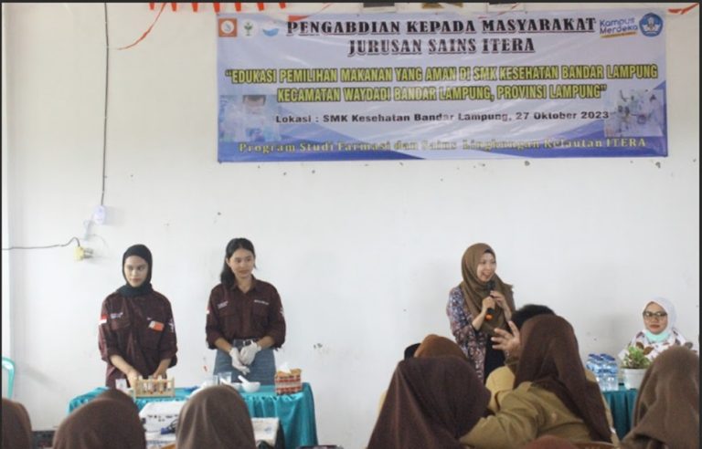 Bandar Lampung – Dosen program studi Farmasi dan Sains Lingkungan Kelautan ITERA Memberikan Edukasi Pemilihan Makanan Sehat yang diadakan di SMK Kesehatan Bandar Lampung.