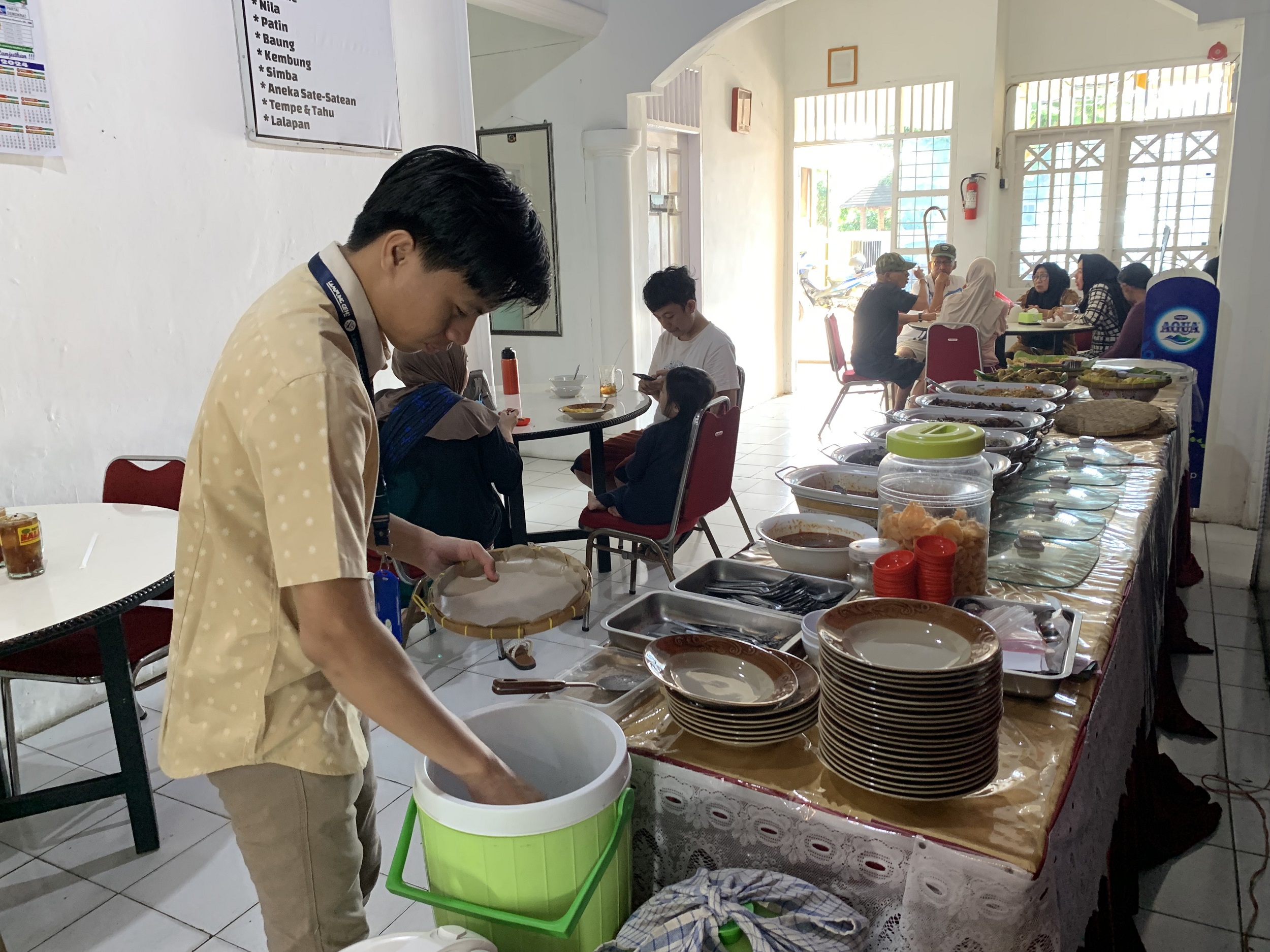 Kemudian, menu makan siangnya terdiri dari sop iga, pindang baung/patin, pepes dan ditambah lalapan sambal. Harga menu sarapan mulai dari Rp. 3.000-Rp. 25.000 sedangkan menu makan siang mulai dari Rp. 20.000-Rp. 45.000. Terkait menu minumannya tersedia teh manis, kopi, susu, dan es jeruk.