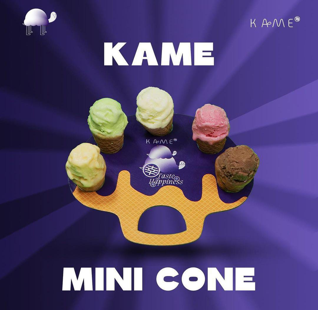 Beberapa Varian rasa yang disajikan di Kame adalah strawberry, alpukat, taro,mangga, vanilla, durian. dan coklat. Disini juga tersedia minuman kekinian seperti taro, milk tea, dan matcha. Kepoin Kame ice cream di akun instagram mereka @kameofficial.id