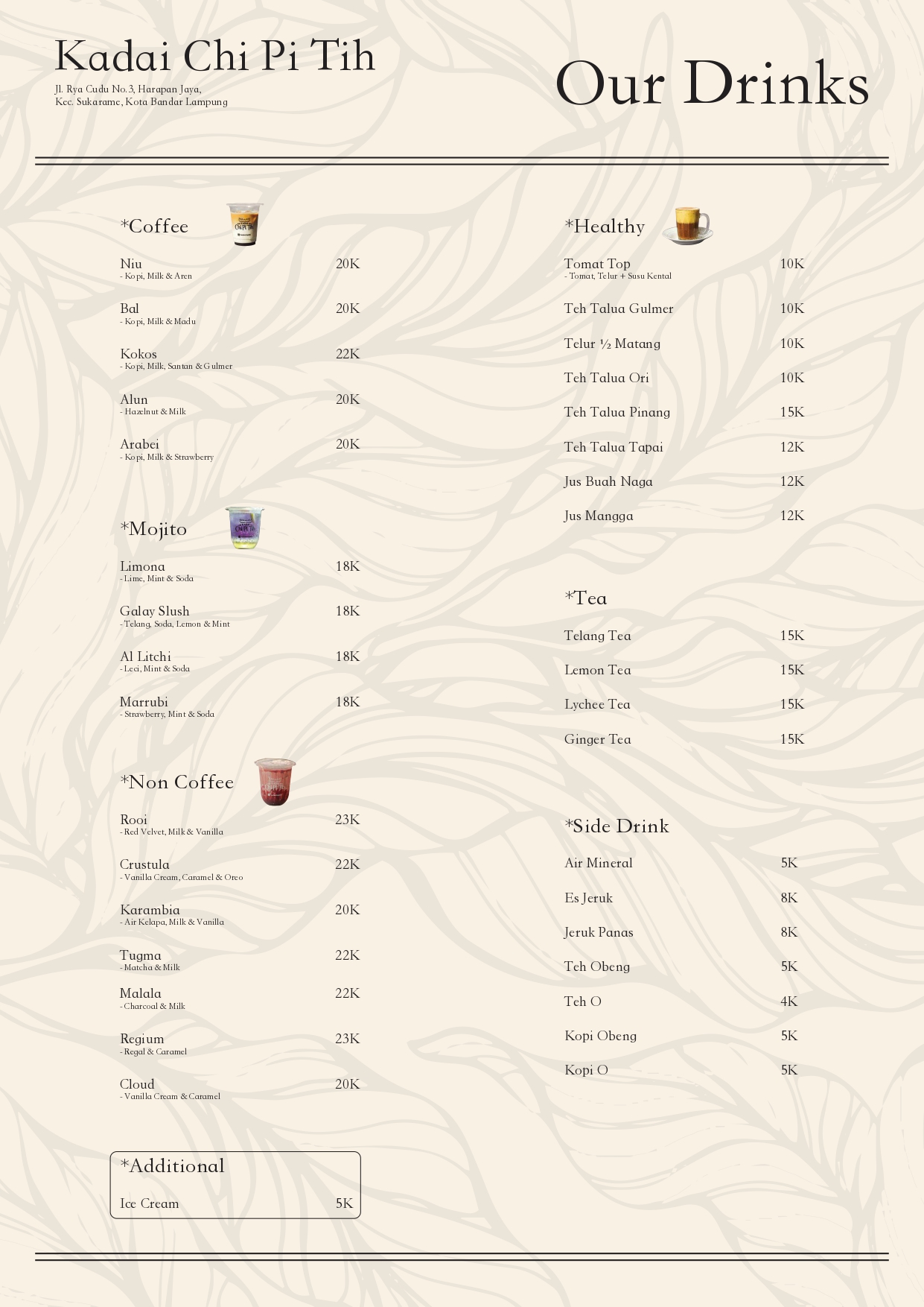 Daftar menu beserta harga berbagai minuman yang ada di Kadai Chipitih | Foto : Kadai Chipitih