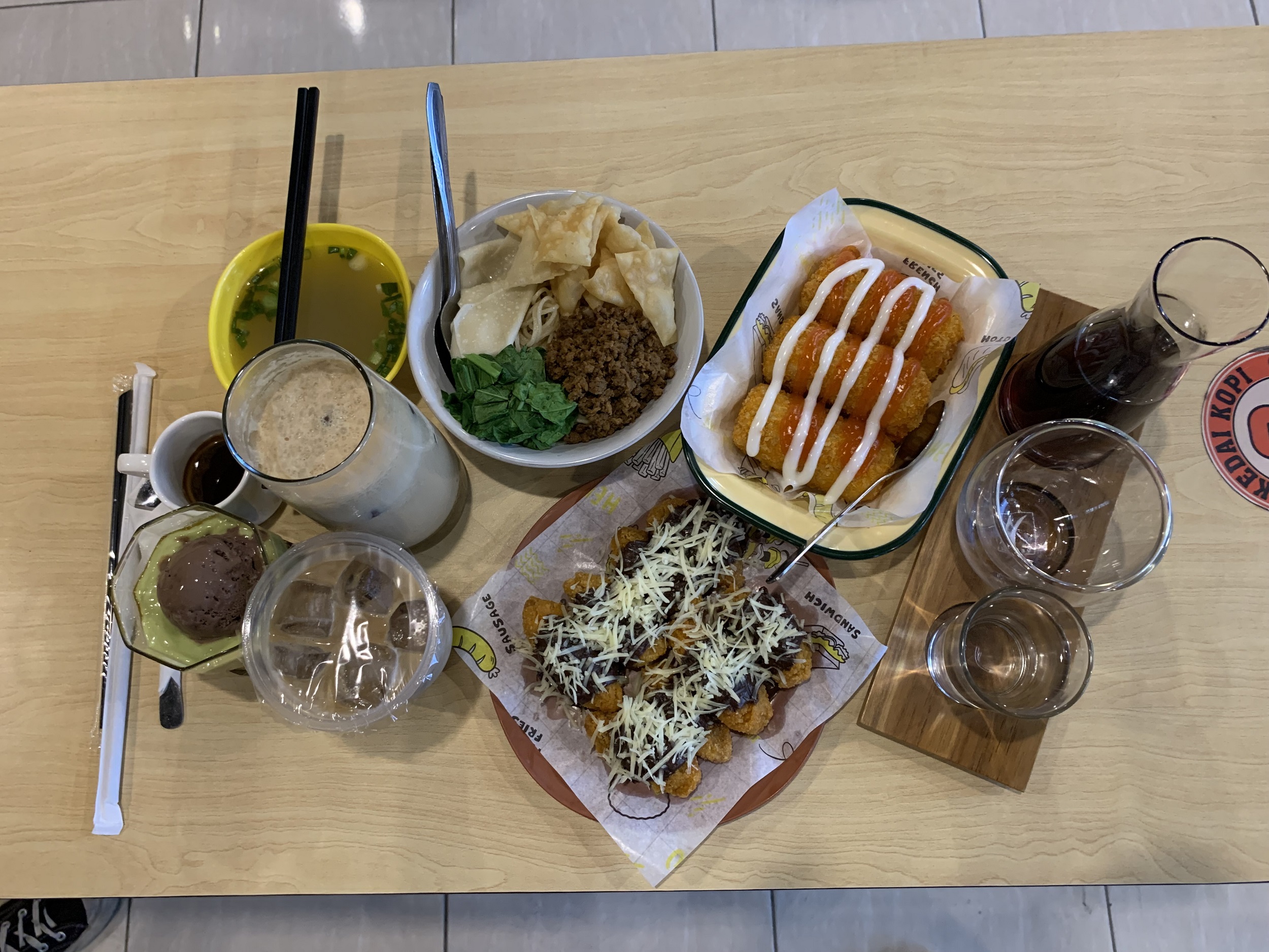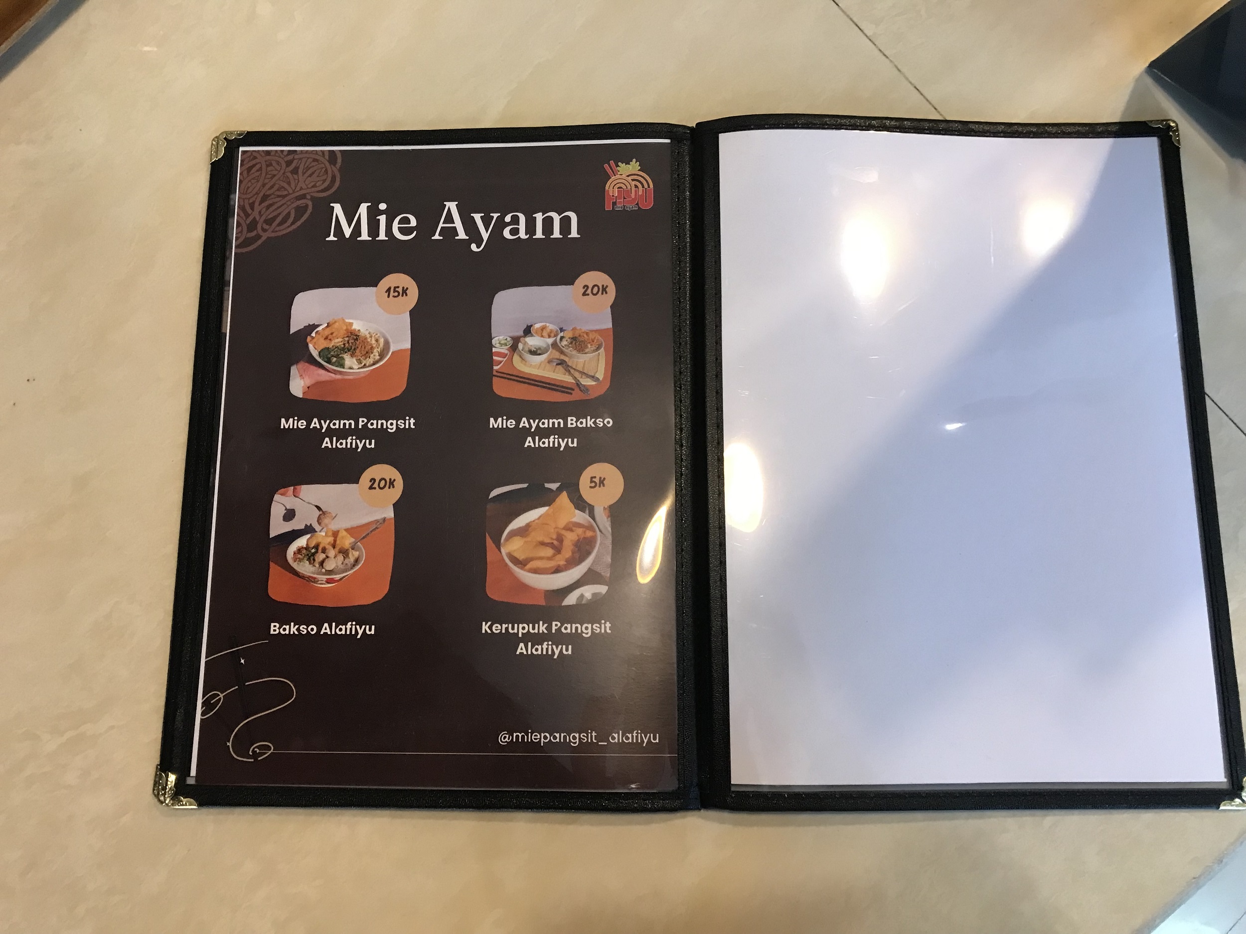 Menu snacknya ada kentang goreng, pisang goreng, risol mayo dan sejenisnya. Kalau mau makan menu kenyangnya disini juga tersedia mie ayam dan bakso alafiyu. Untuk range harga bervariasi mulai dari harga Rp. 20 ribu serta yang termurah sajian snack Rp. 5 ribu saja kalian sudah bisa menikmati Menu dan vibes Kedai Kopi Fiyu.