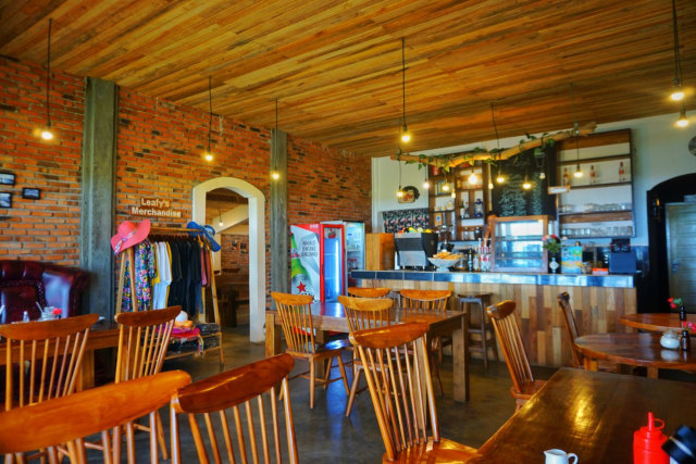 Eni Wijayanti, Owner Leafy’s Cafe, mengatakan bahwa di sini pengunjung bisa menikmati pemandangan laut, ngopi, santai, dan di sini mengutamakan tempat yang nyaman, cozy untuk customer. Leafy’s Cafe juga menyediakan berbagai macam merchandise, seperti T-Shirt, dan topi.