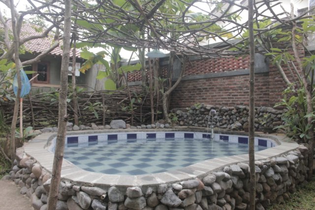 Selain itu, vila ini memiliki kolam renang yang bisa digunakan untuk anak-anak berenang. Tetapi batas penggunaannya hanya sampai pukul 10.00 WIB. Sebab pada pukul 10.00 WIB waktu operasional vila dan cafe di sini sudah dibuka.