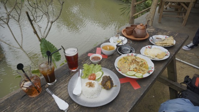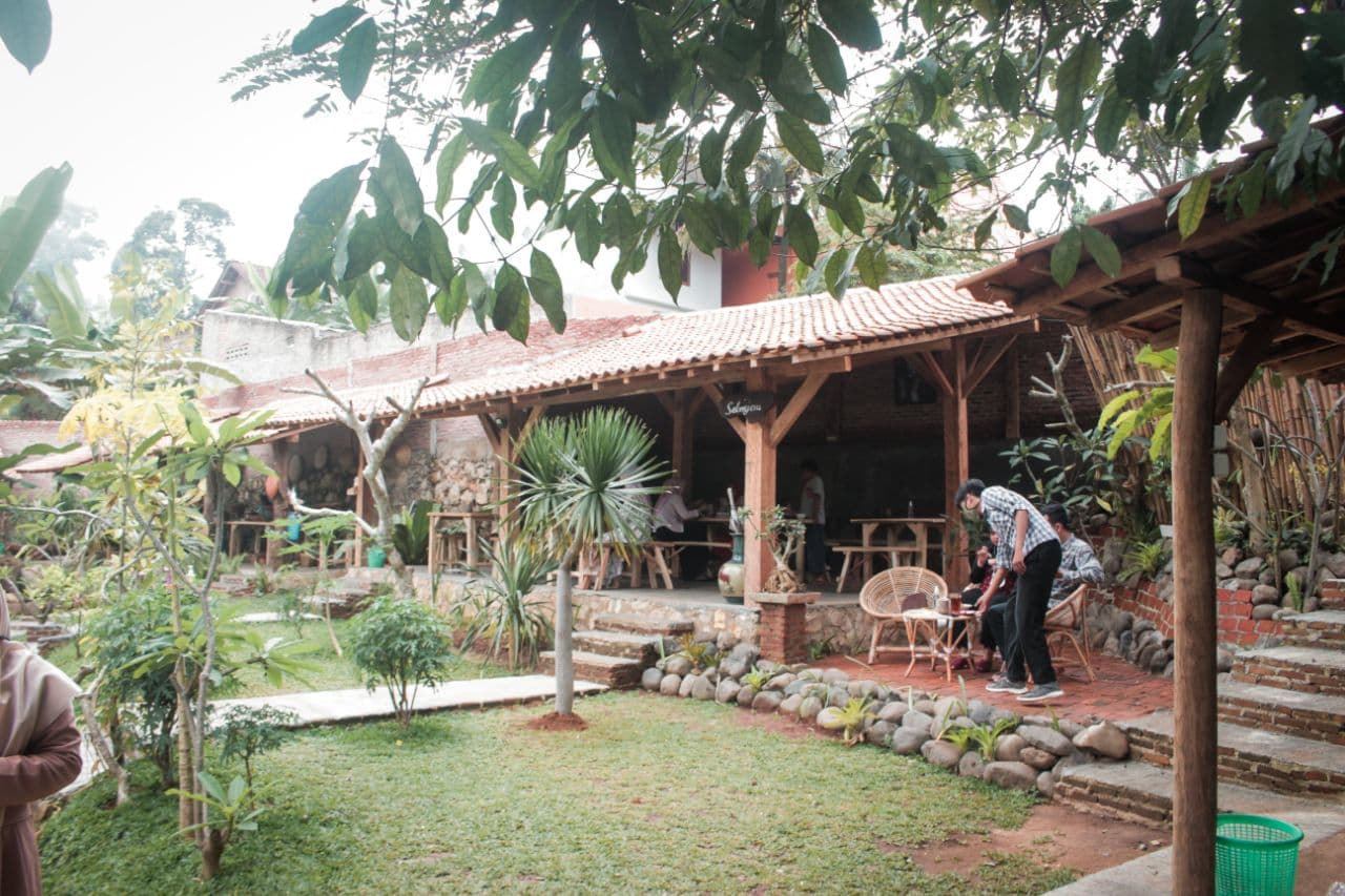 Di sini tak hanya menawarkan nuansa perdesaan saja tetapi juga ada cafe dan vila yang bisa pengunjung nikmati bersama keluarga. Untuk cafe menyediakan berbagai macam makanan dan minuman tradisional di antaranya, ayam bakar, ayam goreng, iga bakar, iga kuah, karedok, mie goreng ikan asin, tempe mendoan, weddang uwuh, teh poci, americano hot/ice, strawberry mojito, dan banyak lagi. Menu-menu di sini pun tergolong murah untuk kelasnya yaitu berkisar antara Rp 15 ribu hingga Rp 25 ribuan saja.