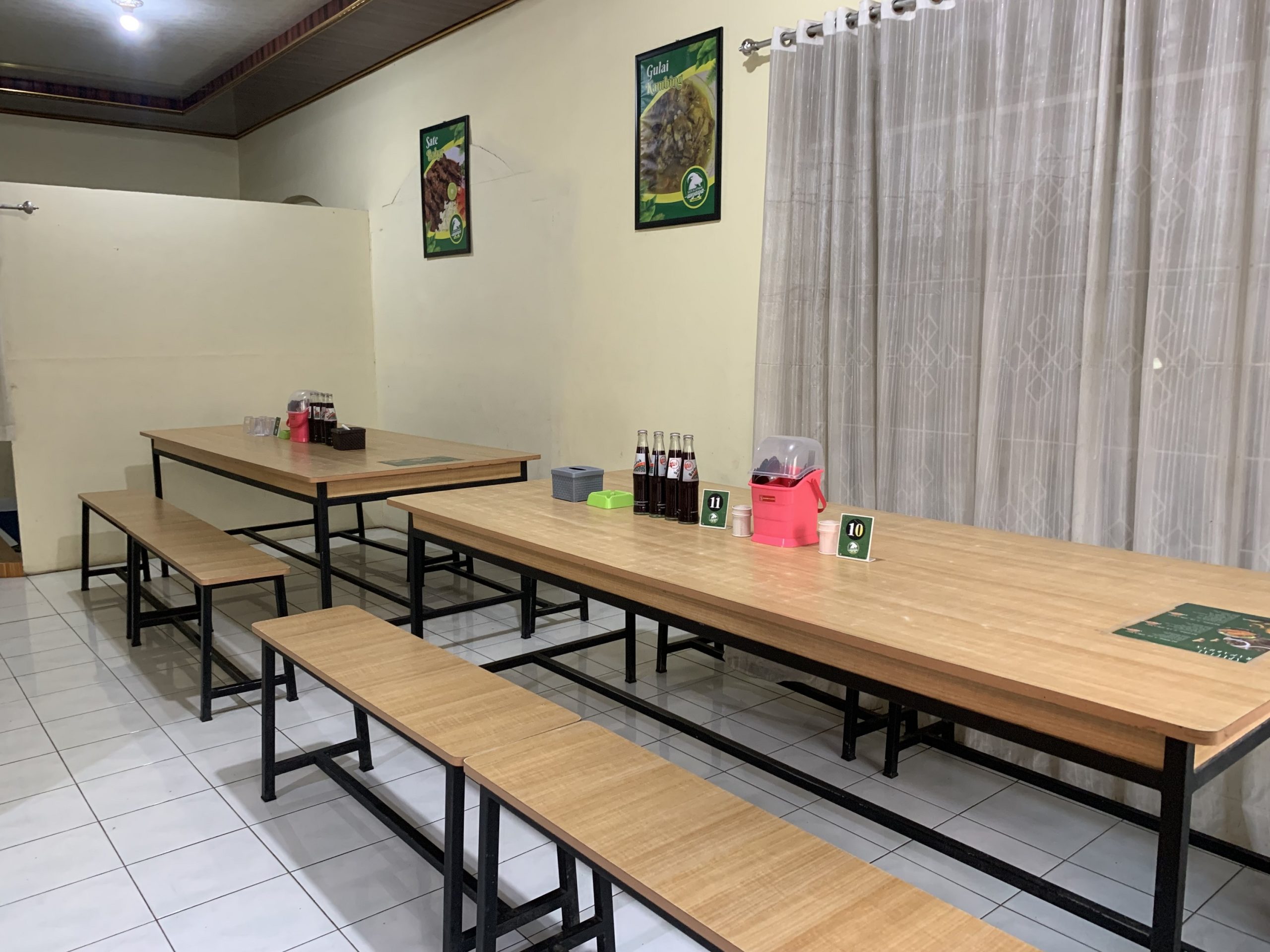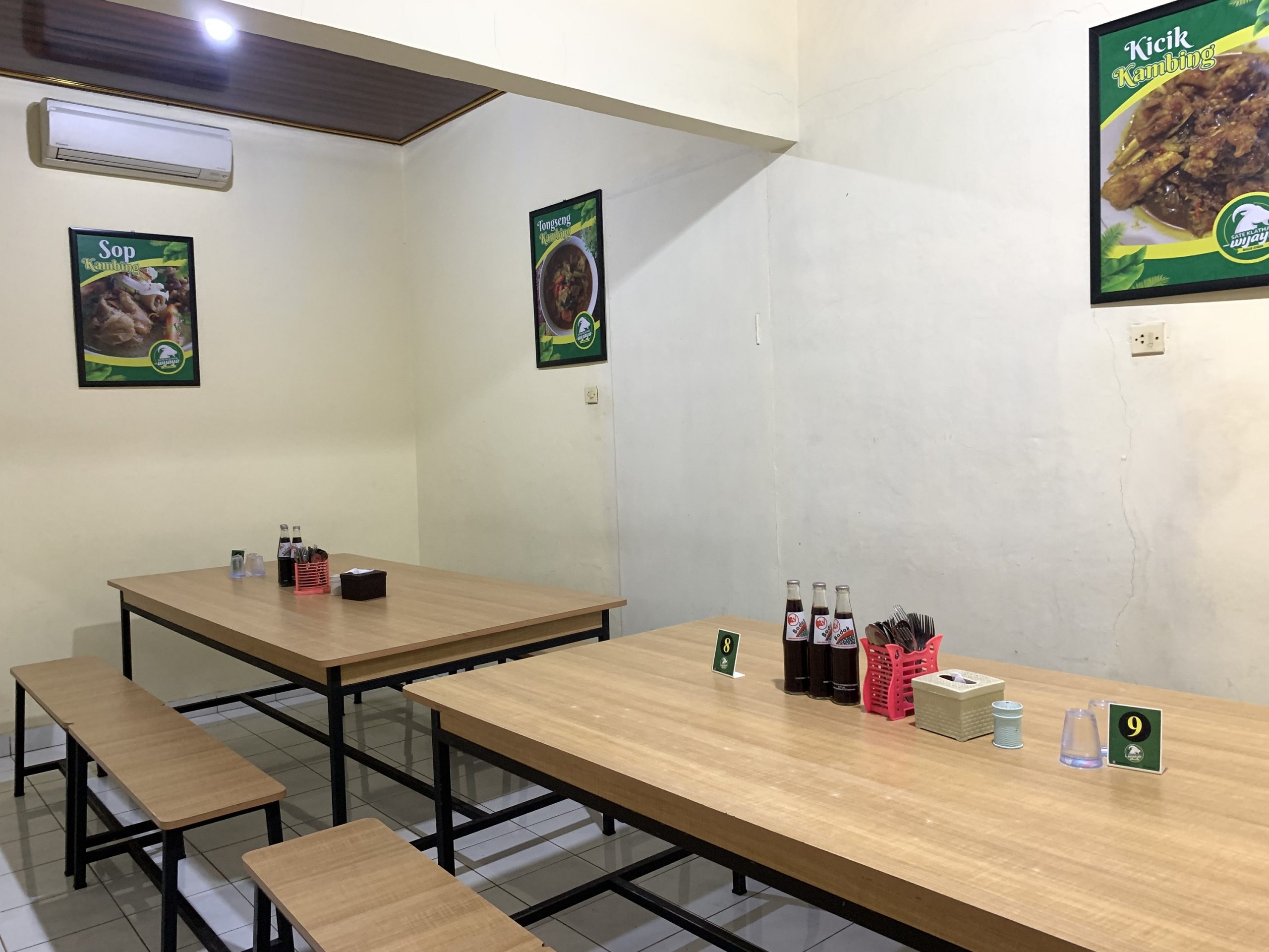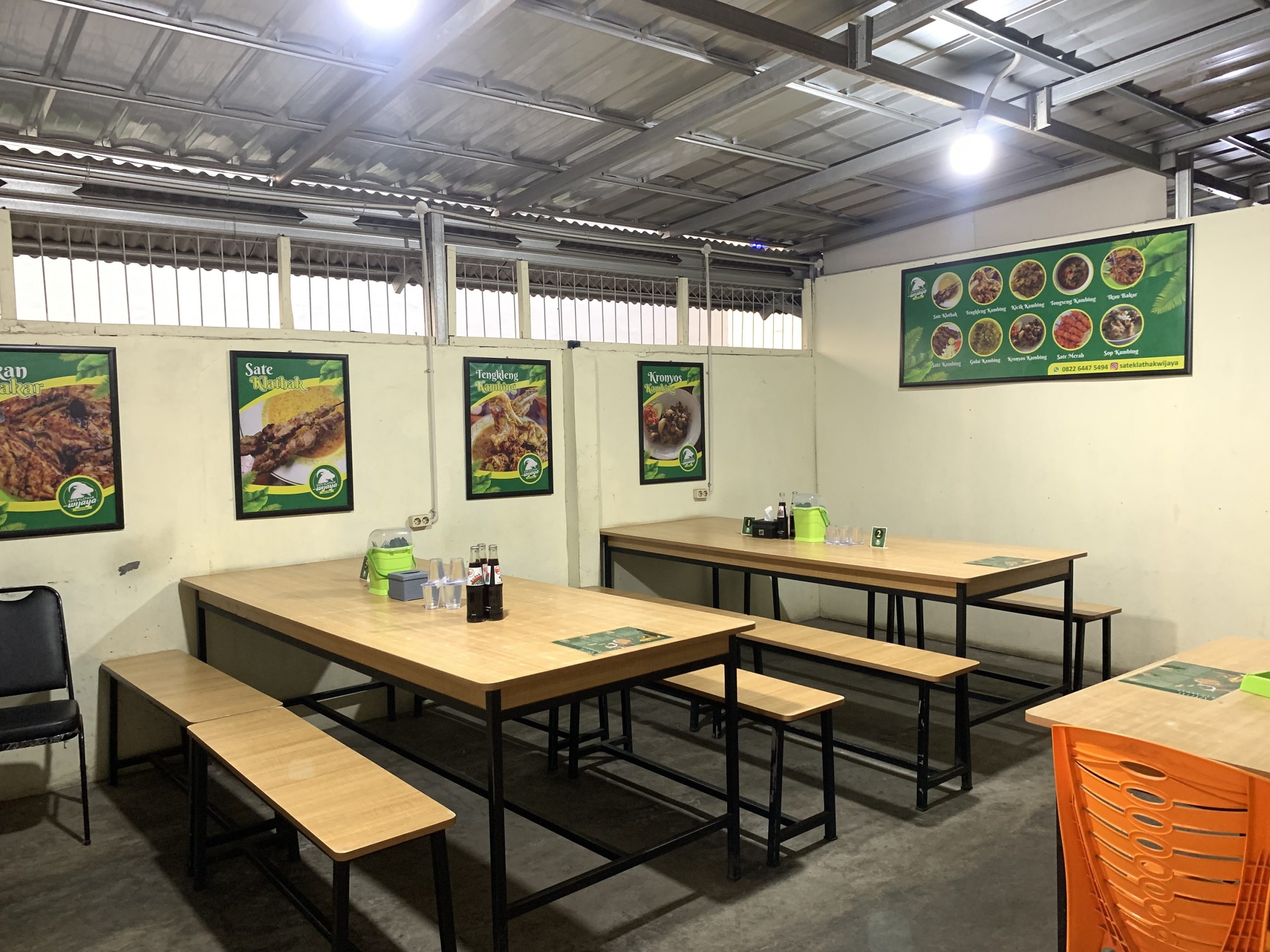 Space meeting room bisa digunakan untuk kerja, meeting, dan mengerjakan tugas sambil menikmati sajian kuliner Sate Klathak Wijaya dengan biaya minimal order Rp. 500.000 dengan fasilitas yang memadai diantaranya full ac, free karaoke, dan disediakan minuman kopi maupun teh.