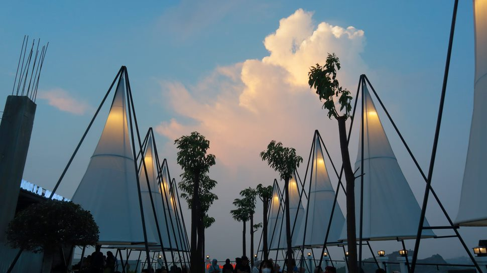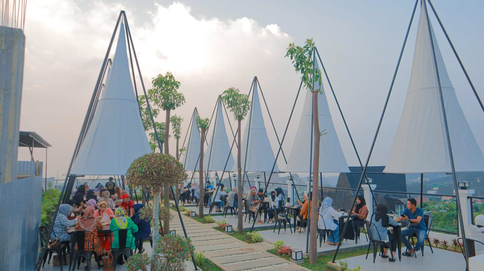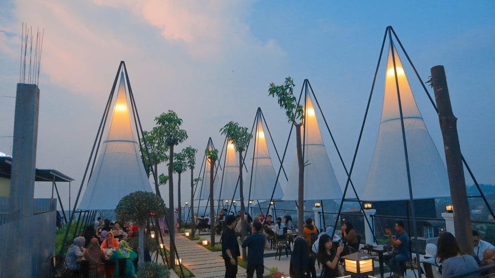 Keunikan lainnya adalah pada tempat duduknya yang unik banget, seperti tenda-tenda kerucut yang melayang menghadap langsung ke view alam. Konsep yang unik banget ya sekelik.