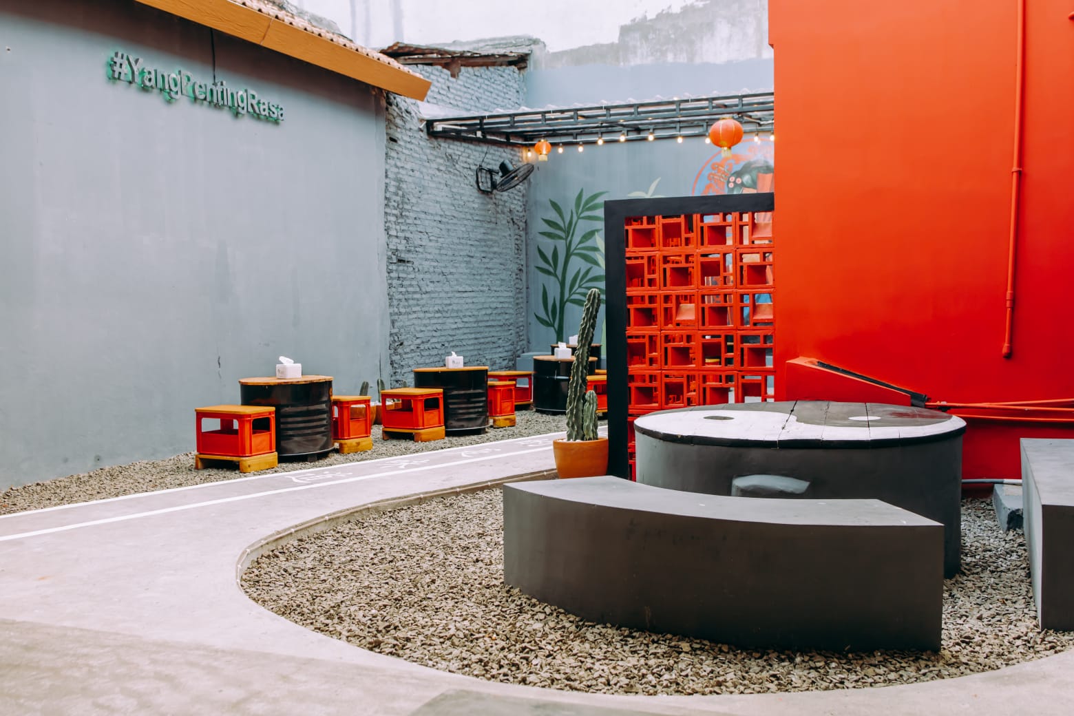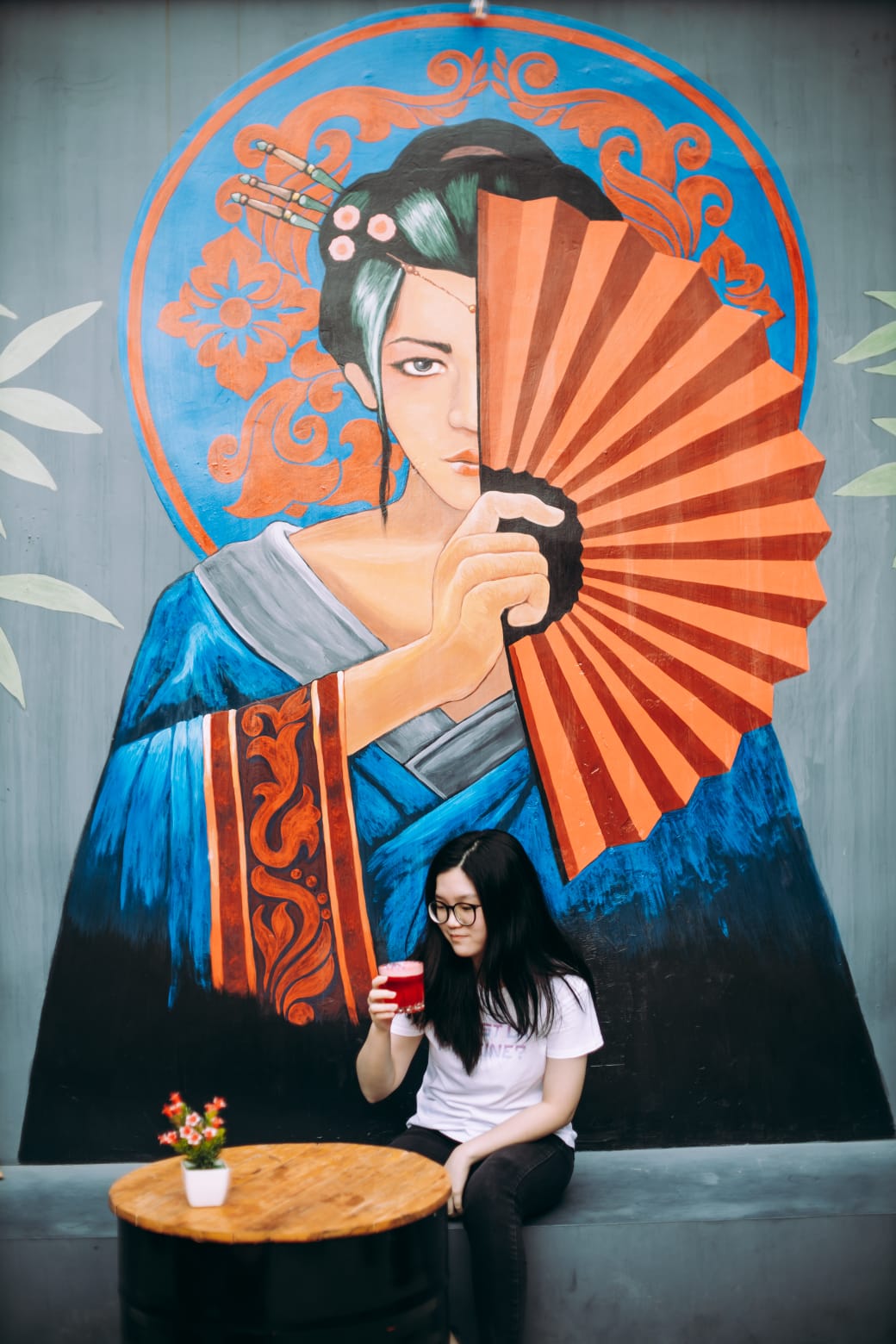 Cafe yang baru dibuka 10 Oktober 2021 ini menjadi cafe yang pertama mengusung konsep jalanan di Tiongkok dengan warna merah yang mendominasi dan mural wanita yang memegang kipas menjadi ciri khas kedai ini.