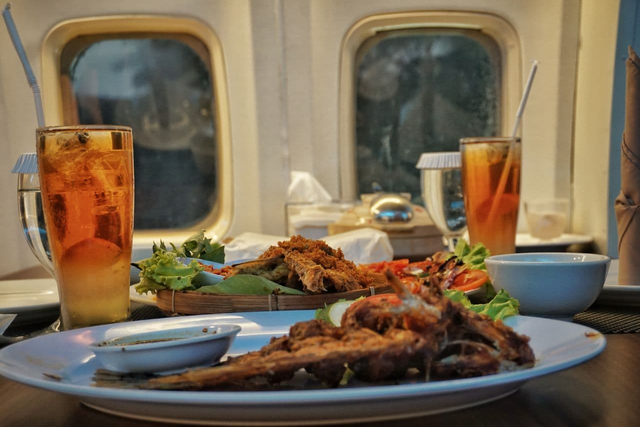 Interior pesawat disesuaikan agar pengunjung merasa nyaman saat menyantap hidangan, Selasa (27/4/2021) | Foto: Roza Hariqo/Lampung Geh