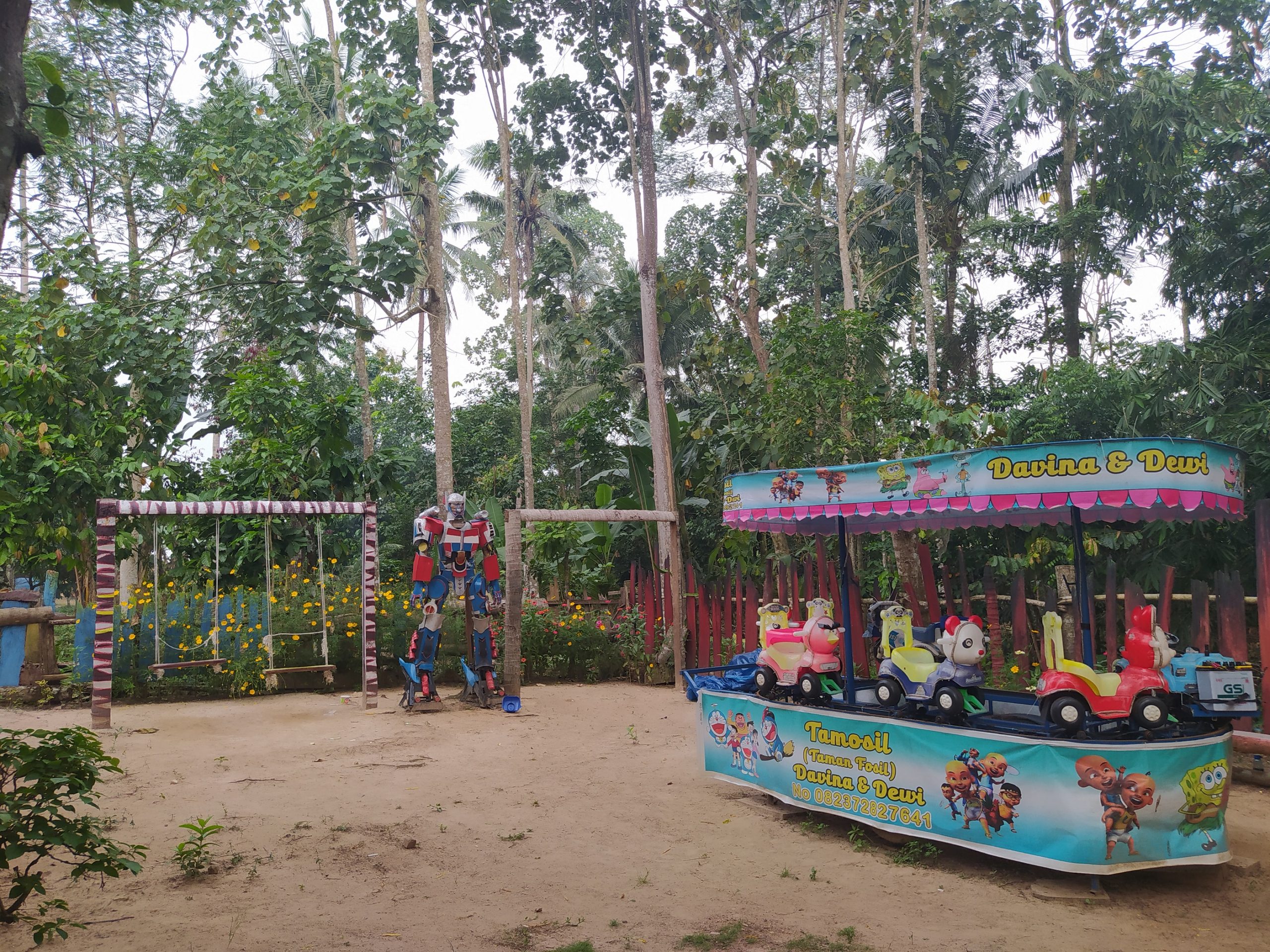 Lampung Selatan – Taman Fosil atau lebih dikenal “Tamosil” merupakan taman wisata keluarga dengan penuh wahana bermain anak di dalamnya. Alamatnya berada di Desa Sidodadi Asri, Kecamatan Jati Agung, Kabupaten Lampung selatan. Dari pusat Kota Bandar Lampung berjarak 26 km atau memakan waktu sekitar 1 jam kurang untuk bisa sampai ke lokasi. Tepat lokasi wisata ini berada di tengah pedesaan yang masih asri akan suasana alamnya, di sekitar lokasi juga terdapat kolam pemancingan dan persawahan warga. Hal ini menjadikan daya tarik sendiri bagi wisatawan yang berkunjung, dengan begitu penduduk lokal dapat memperkenalkan kearifan lokal daerah aslinya. Terkait harga tiket masuk ke taman wisata ini hanya dikenakan biaya Rp 5 ribu per orang dan sudah termasuk seluruh wahana yang ada di dalam lokasi. Sedangkan biaya parkir kendaraan bermotor Rp 2 ribu dan khusus mobil Rp 5 ribu. Jam operasional Tamosil buka setiap hari kecuali hari Jumat (libur), dibuka mulai puku 09.00-21.00 WIB.