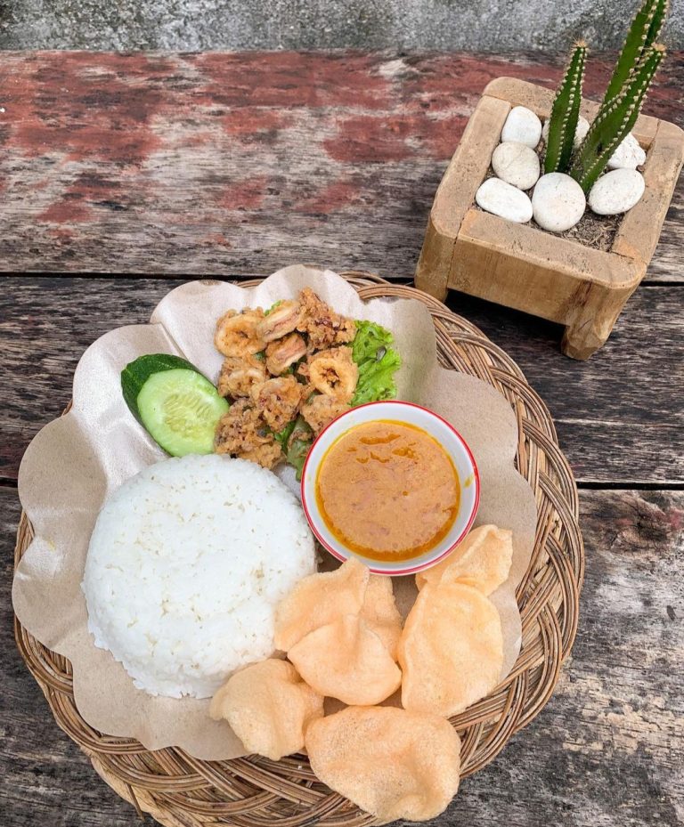 Untuk menikmati nasi cumi krispi saus padang sekelik hanya perlu membayar 15 ribu rupiah. Mayoritas menu yang disajikan di kafe ini adalah menu tradisional Indonesia. Untuk mengetahui info kafe ini bisa sekelik cek di akun instagramnya @swasanadaun